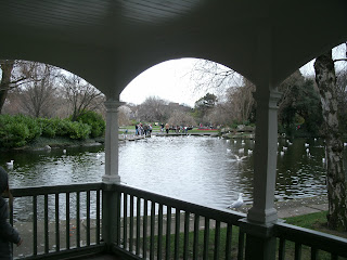 Today I started my first walk around the city to get an overview of the centre of the town. I passed the Grand Canal, heading for St. Stephens Green, a park with a pond, with seagulls, and a lot of flowers and a lot of people too, it was excursion day, I came along a smal Huguenot cemetry, wich was unfortunate not open. After that I need a recovery from that much green and I made a detour into the shopping street, did subvert the Powerscourt Townhouse (http://www.powerscourtcentre.ie/), and reached the Nassau Street and there is the Trinity College.