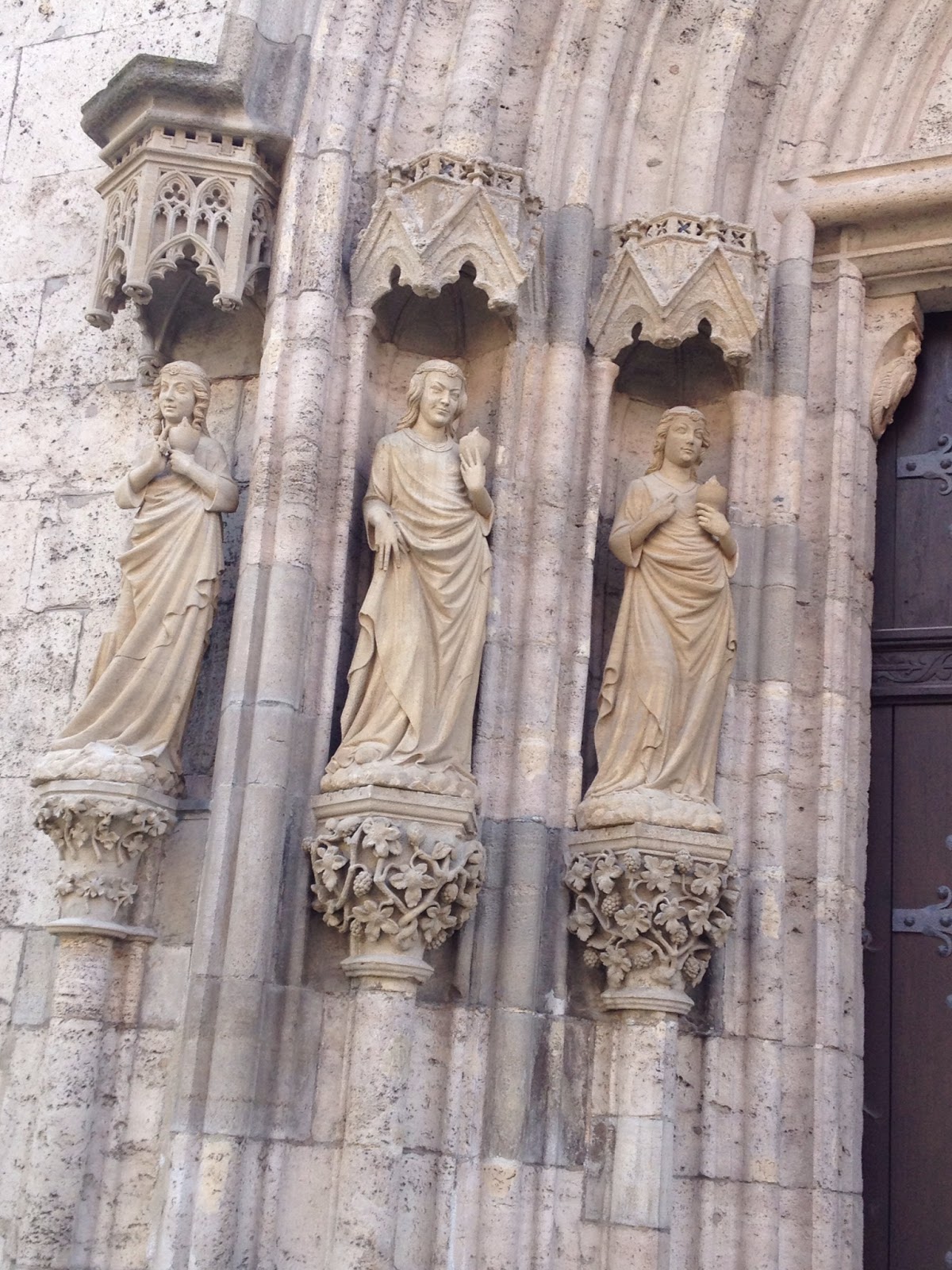A visit from the outside is interesting too, at first the south gate. The former main entry to the church, what was a novelty, and at a pseudo-balcony we see King Karl IV. with his wife Elisabeth of Pommer and some royal staff. At the north gate we find the story of the seven smart and foolish virgins. All sculptures have been destroyed in the riots of the Peasant's War and those are replica from 1900.