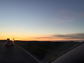 Obwohl es weder trüb noch grau ist, ist es doch Ende November und bald wird es dunkel werden, also fahren wir zurück, mit dem Sonnenuntergang in Richtung Stralsund, wo wir von einem Vollmond am wolkenlosen Himmel begrüßt werden. Das Leben ist schön.