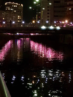 Sehr schön auch die Beleuchtung in Meguro, entlang des gleichnamigen Flusses sind die Bäume weiß, rosa und pink, Kirschblüten im Winter. Fabelhaft.